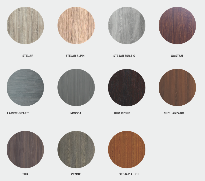 Culoare oak lub alpine oak lub rustic oak lub chestnut lub larch graphite lub mocha lub dark walnut lub lanzado walnut lub thuja lub wenge lub golden oak